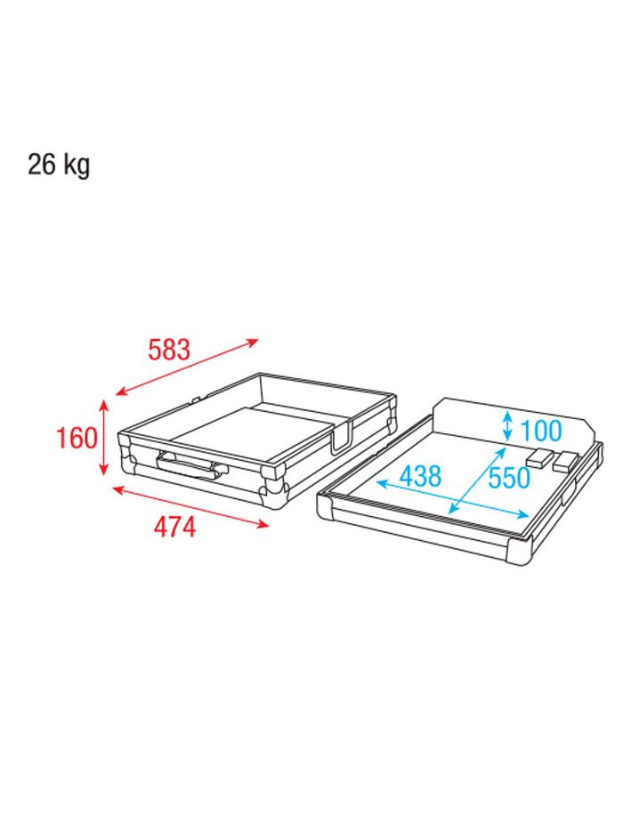 This safe and robust flight case has a suitcase handle, recessed locks, rubber feets, stacking dishes and a ventilation dish.